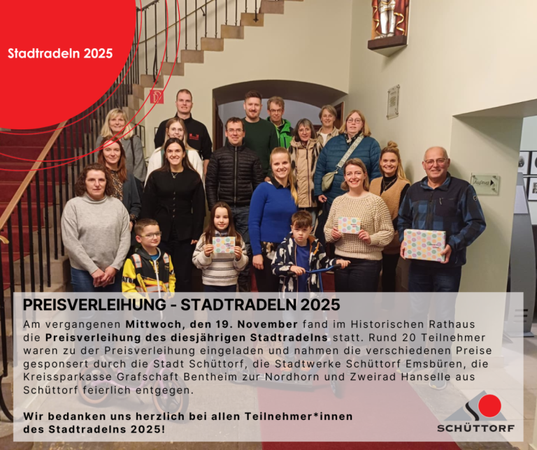 Schüttorf hat beim diesjährigen STADTRADELN ein beeindruckendes Ergebnis erzielt und im Landkreis den zweiten Platz erreicht. Insgesamt wurden 95.117 Kilometer zurückgelegt. 907 Radelnde in 26 …
