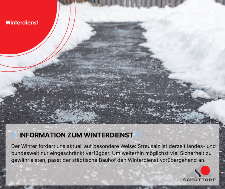 Der Winter fordert uns aktuell auf besondere Weise: Streusalz ist derzeit landes- und bundesweit nur eingeschränkt verfügbar. Um weiterhin möglichst viel Sicherheit …